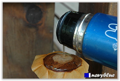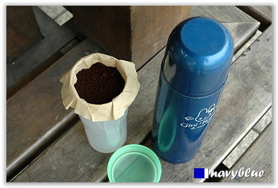 然後用保溫瓶充當手沖壺,裡面的熱水是在古坑7-11要來的,保溫效果不是很好的保溫瓶,經過半小時後溫度降了幾度,大約剛好可以沖咖啡。
