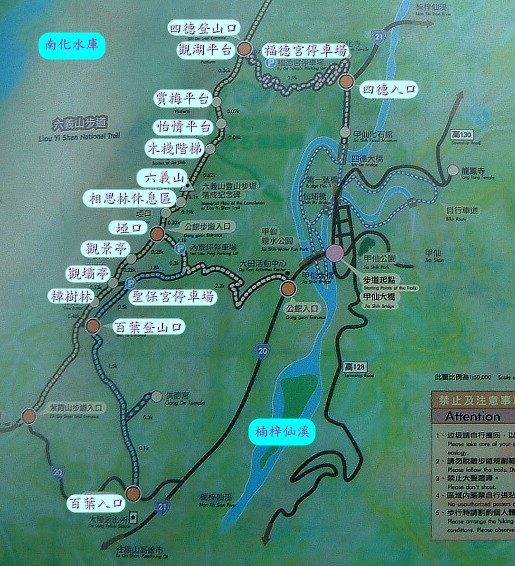 4.四德入口:台21線過甲仙化石館後依指標左轉3.1K抵福德宮停車場,由此起登。
