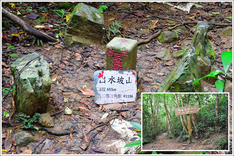 ↑出水坡山。行至右上小圖叉路,記得右入30公尺,就可以超輕鬆撿到一顆二等三角點基石——出水坡山。