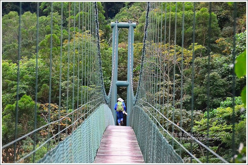↑新的姑仔崙吊橋橫越姑仔崙溪的支流茶茶牙頓溪,使山友走完古道不致於還要冒險涉水過溪。