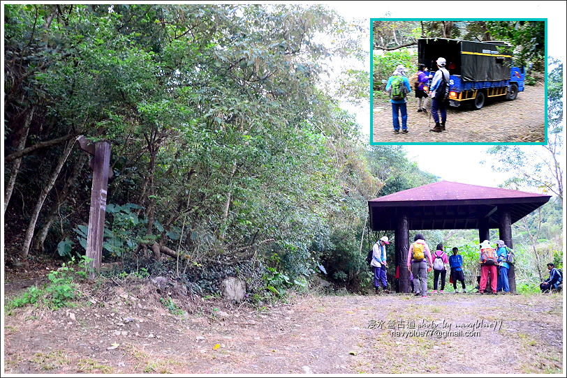 ↑古道過姑仔崙吊橋後即到終點涼亭,我們約好接駁的卡車已在此等候。