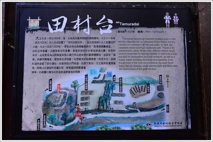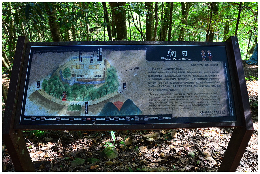 朝日駐在所。林務局在每個駐在所或重要地點都設有解說牌。