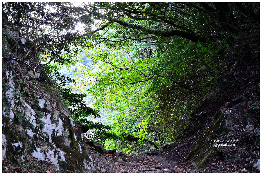前段有零星的紅榨楓,十一月底只有地面上的落葉,樹上大部分還是綠的。→→轉往霞喀羅古道紅葉篇