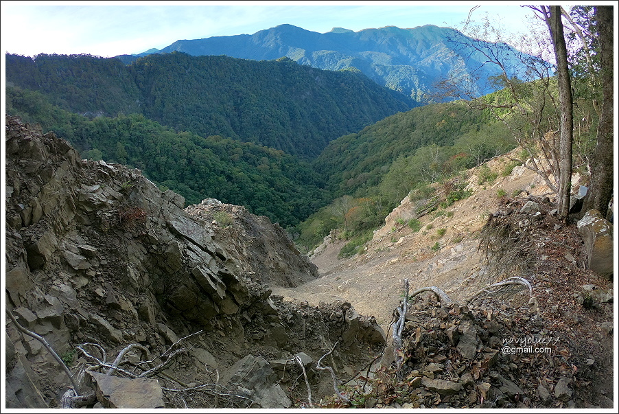 崩塌地高繞路段,由最高處下瞰崩塌情形,十分觸目驚心,不過只要小心走,都可以安全通過。