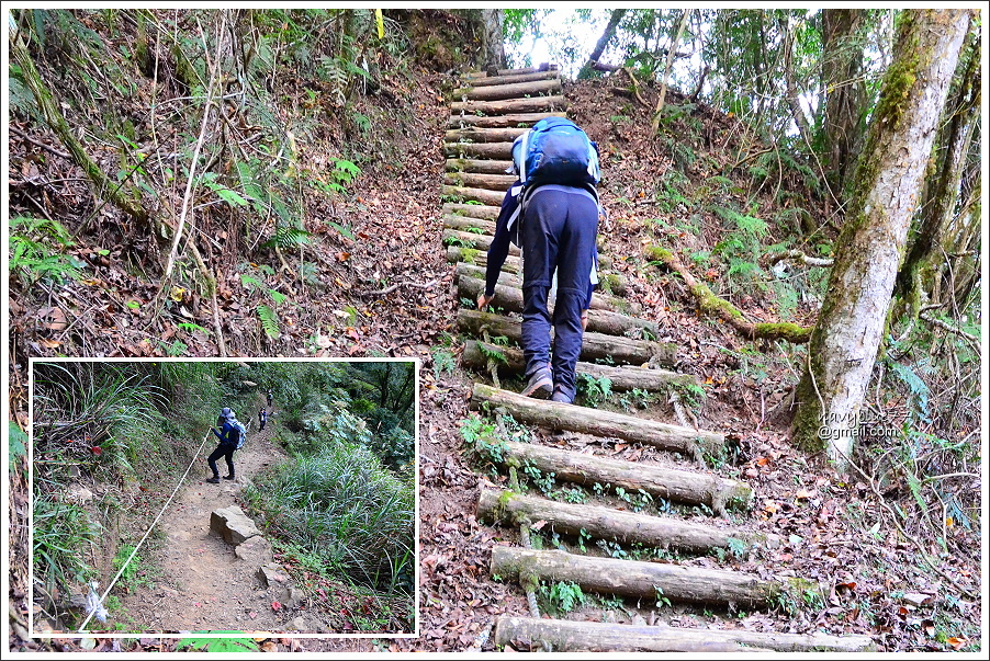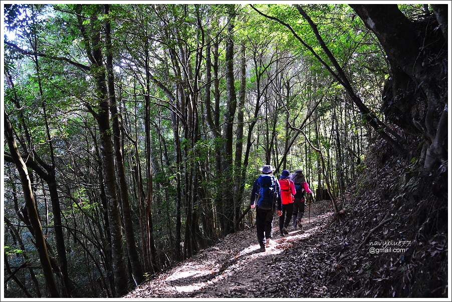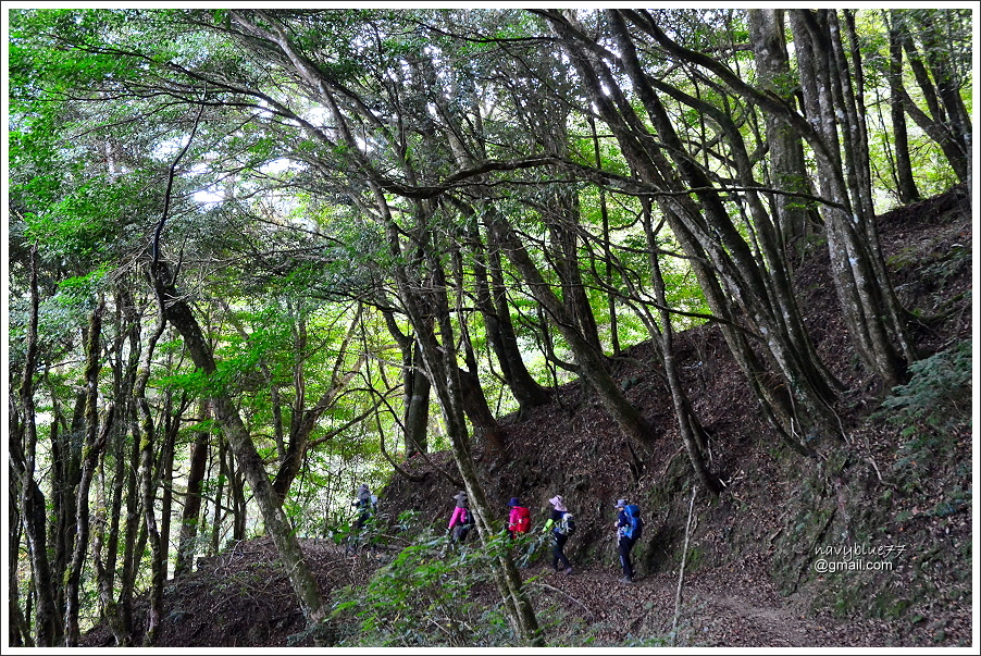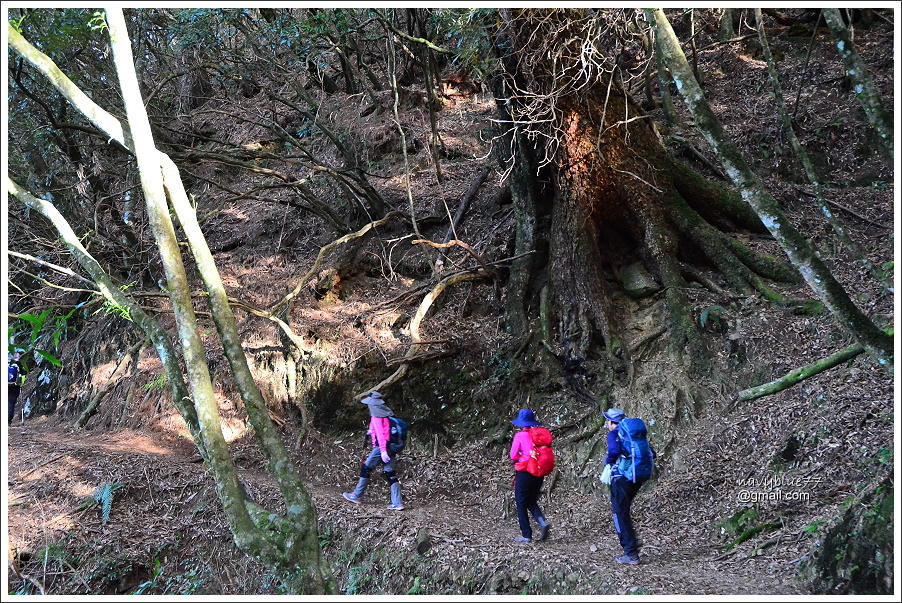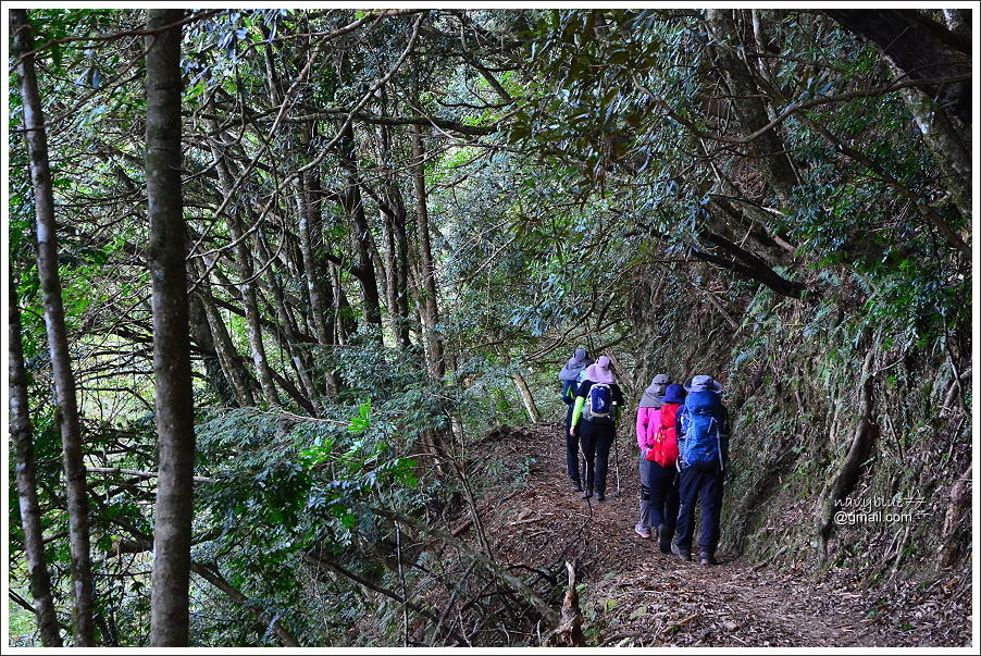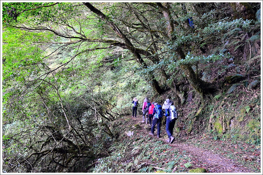 布魯隊友們於下午3:30抵達養老登山口,含休息拍照時間共費時約9小時,大概算是普通速度的走法。除了幾處高繞或下切路段坡度較大,主線幾乎都是和緩的山徑,而且全程都走在林蔭裡,林相也佳,太追求速度的趕路方式實在浪費了一路的山林美好。而雖然古道難度不高,但有幾個高繞點標示不夠清楚,如果天色昏暗或不注意,也有可能會迷失,前陣子就有登山高手差點因為走錯路摔下山坡。加上古道長度大,考驗耐力,提醒有興趣的朋友走上古道之前,仍要做好萬全準備,不可輕忽。