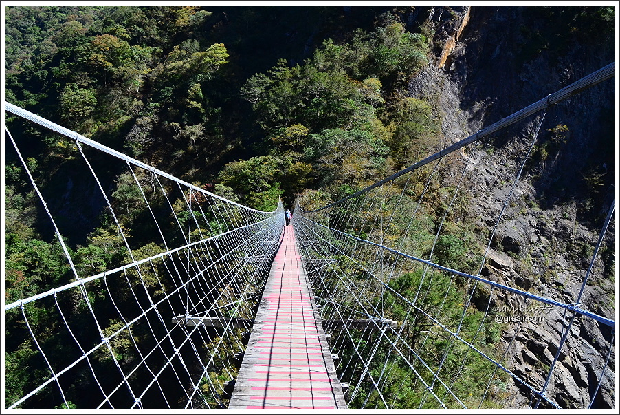 白石吊橋高懸在薩克亞金溪谷上,一百多公尺長的橋身,走起來有點刺激,有懼高症的朋友慎入。