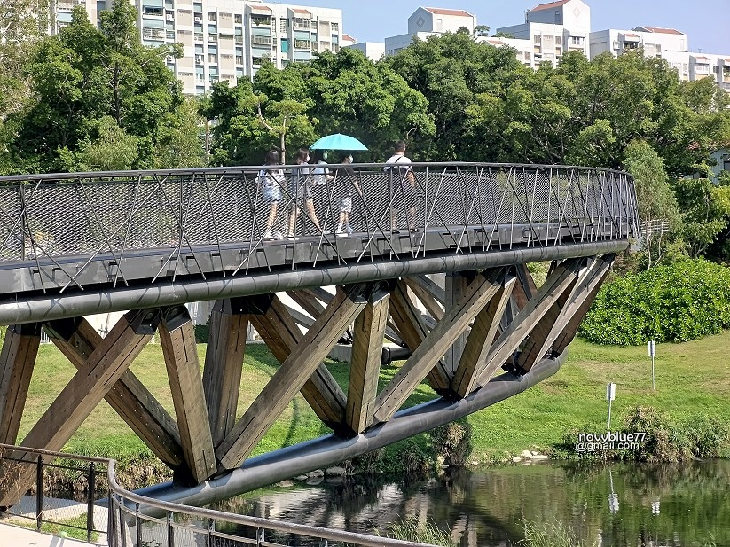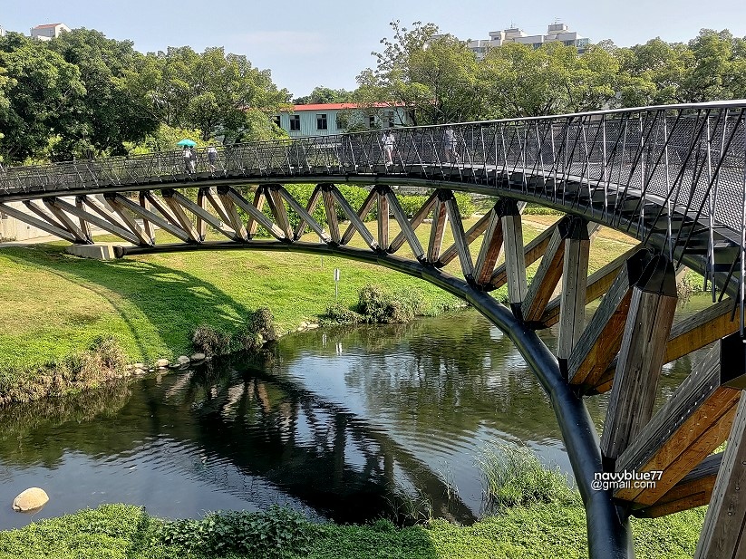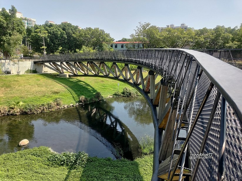 ↑月見橋造型優美,一彎圓弧畫在竹溪上,是竹溪步道上最美的地方。