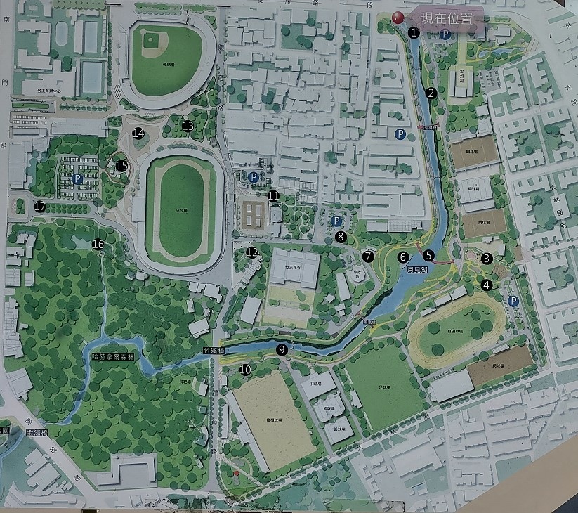 ↑布魯實際行走的路線,由新生公園停車場開走。竹溪步道週邊有多座停車場,都可當作開走的起點。