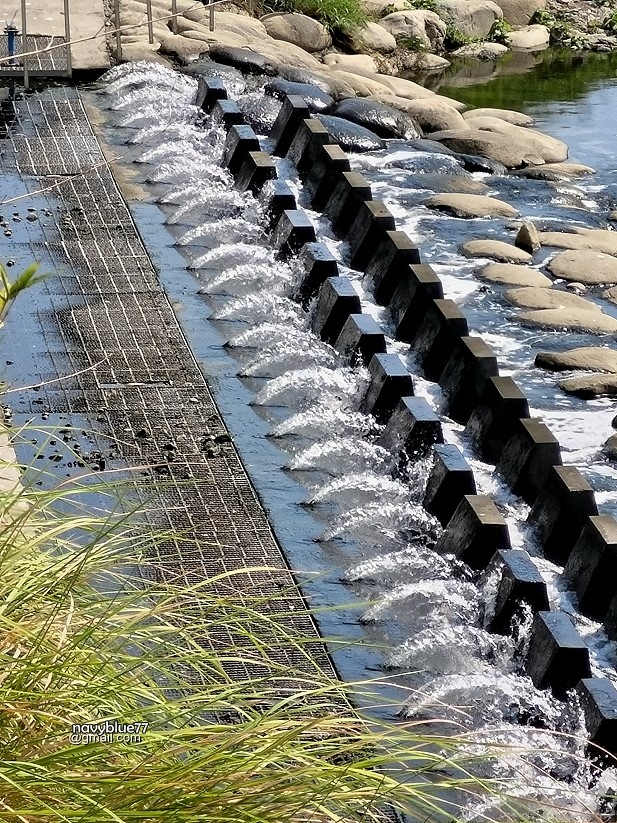 ↑水舞廣場底下的排水幹渠,經由水位差過濾再整排噴出,很有水舞效果。