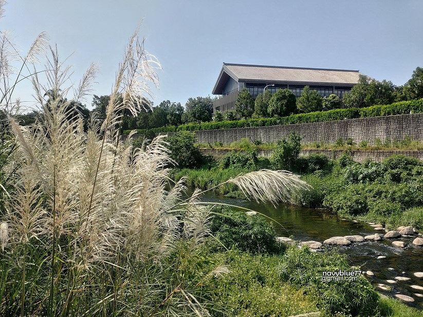 ↑十月初的甜根子草迎風招搖,映著溪對岸的竹溪寺新建築,很有一種典雅感。