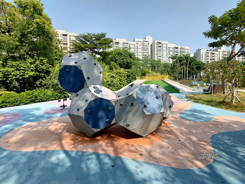 ↑新生公園停車場位於竹溪步道中央東側,距離步道最近,有滑梯和兒童攀岩設施,是小朋友的最愛。