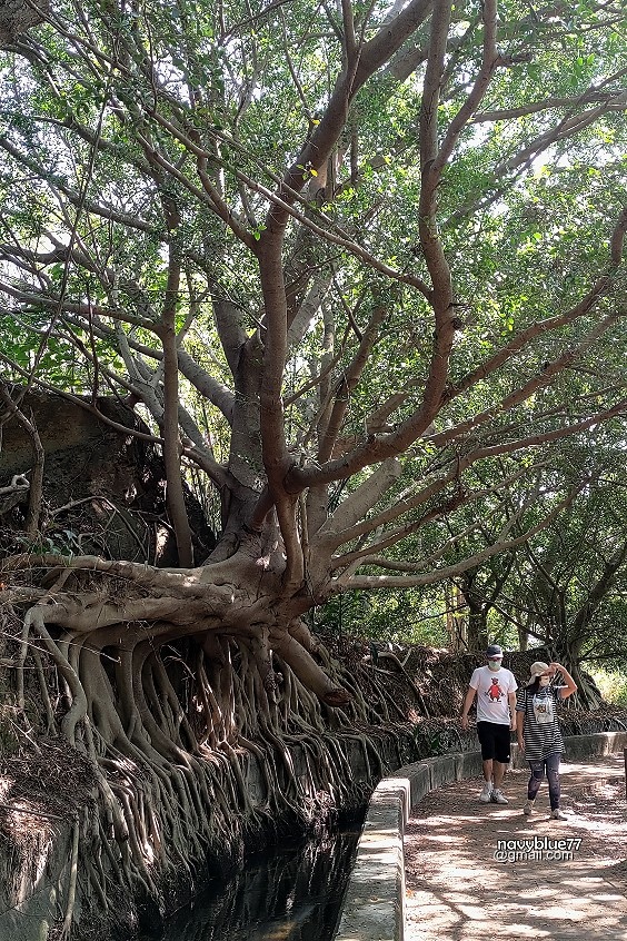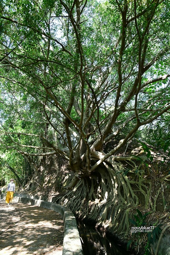 知高圳步道的招牌景點,是這棵大榕樹,分生了許多樹根伸進圳中,像是極渴的老人。