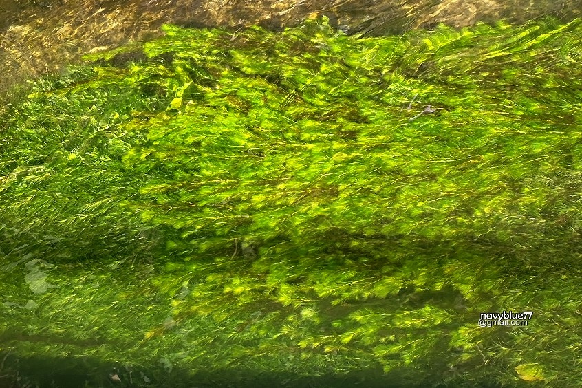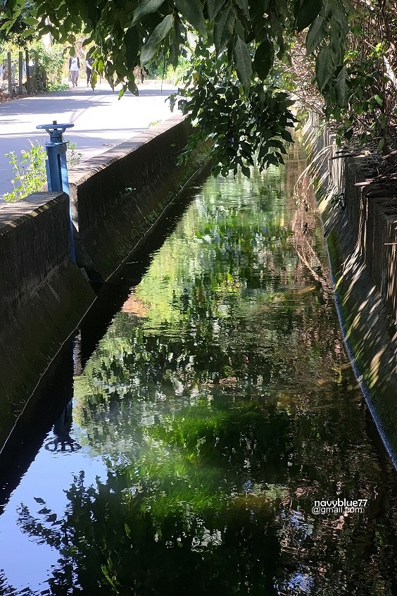 知高圳的水十分清澈,圳溝中有兩種水草油油的招搖著,十分美麗。