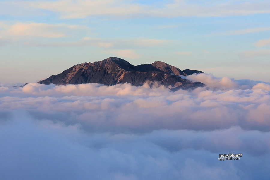 不久,營地前傳來驚呼聲,布魯趕回營地一看,原本東向籠罩著營地的霧嵐也沉降成一波波的白浪,由最遠處的雲峰、向陽山,後浪推前浪,漫過塔關山,一直湧到營地之前,原來雲海已經把3026高地湧成一座小島,讓布魯又是目瞪口呆。
