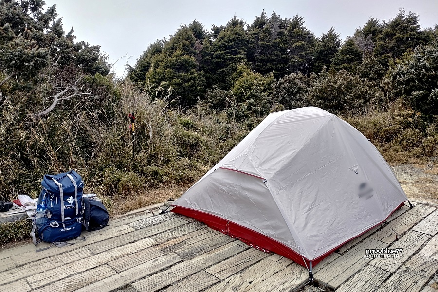 夜幕終究是要低垂的,山友們各自返回山屋與營地。這一晚的3026高地就只有3頂帳篷,30公尺外的箭竹叢間有兩頂,而營地的木棧台則由布魯包場了。夜裡的庫哈很冷,但傍晚的自然大秀,讓布魯的心還熱著。