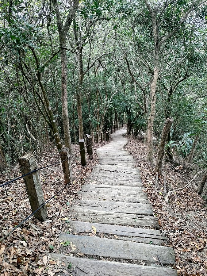 鈺鼎步道大部分是枕木階梯,坡度適中,只有上觀景台前稍陡。