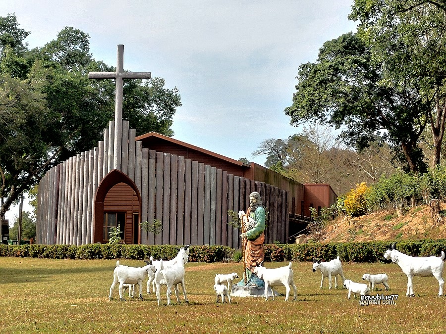 方舟教堂和耶穌牧羊塑像,共構出聖經諾亞方舟的故事。