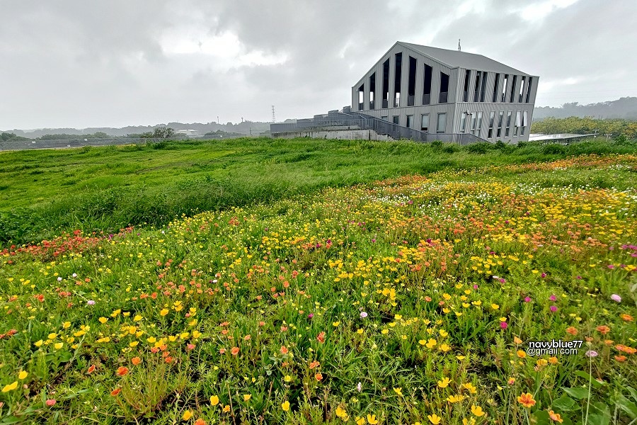 山丘上的馬齒牡丹開得很美,使市場主建築襯托得更出色。