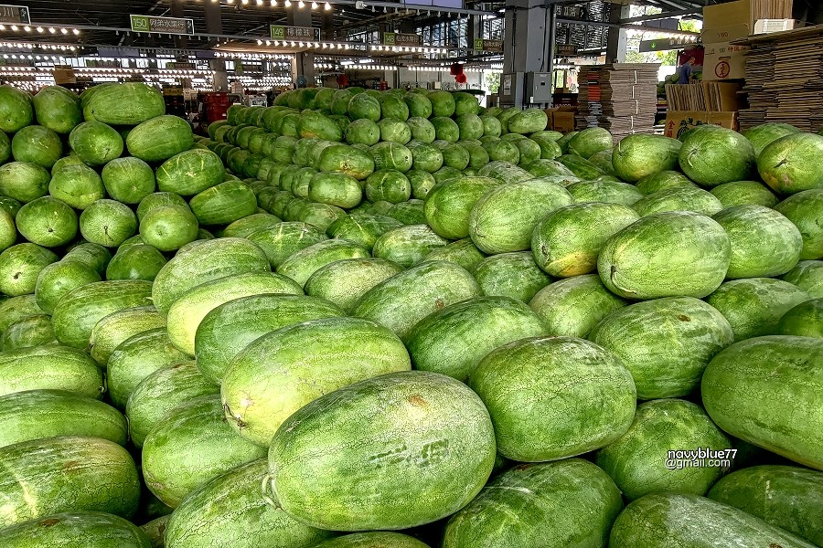 只有在果菜市場才會看到的西瓜山,真想抱一大顆回家。