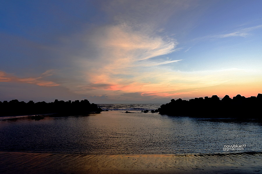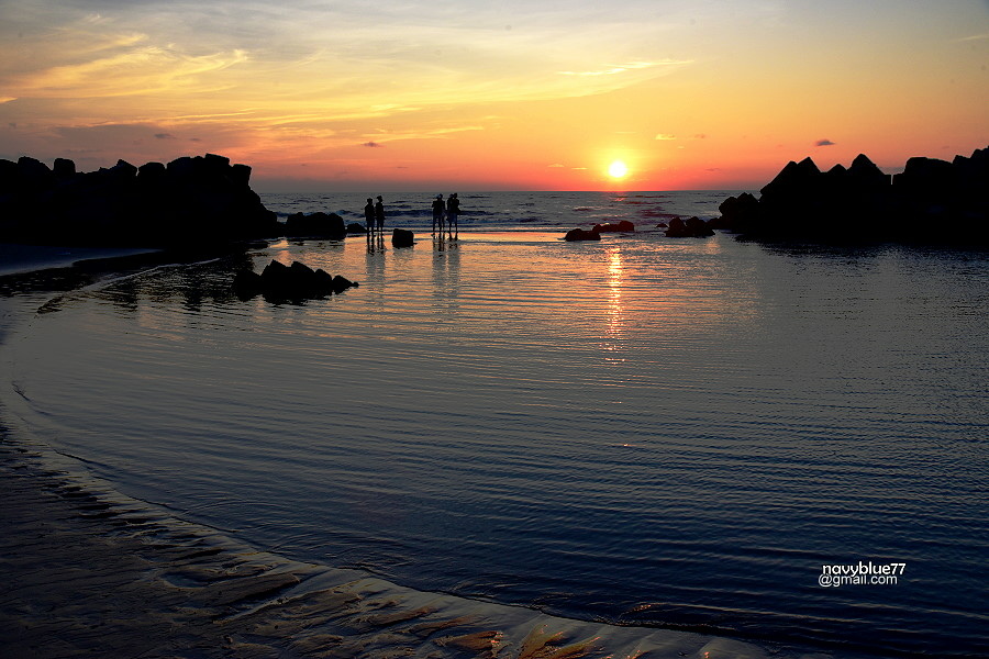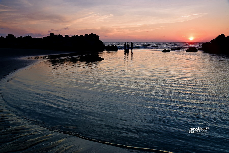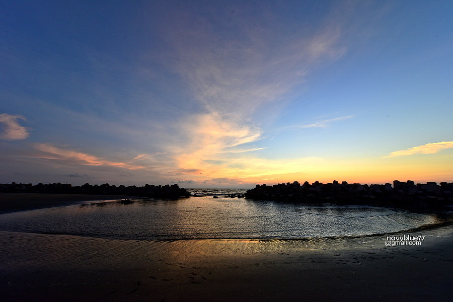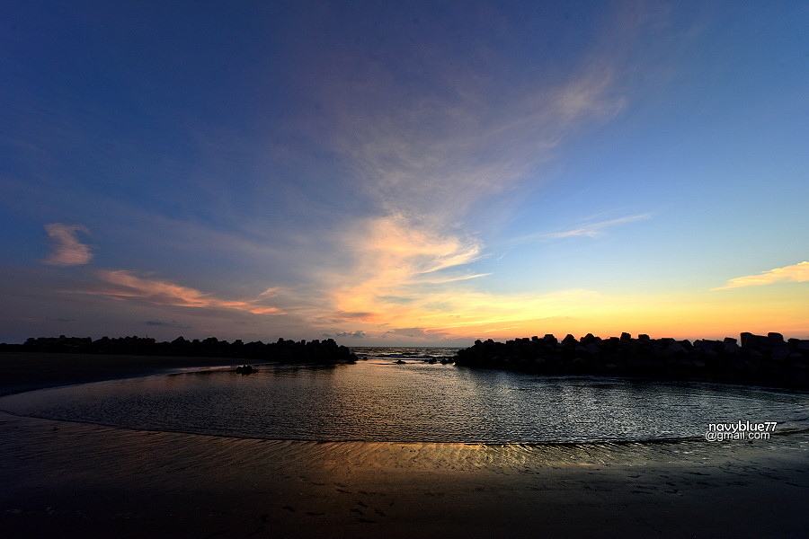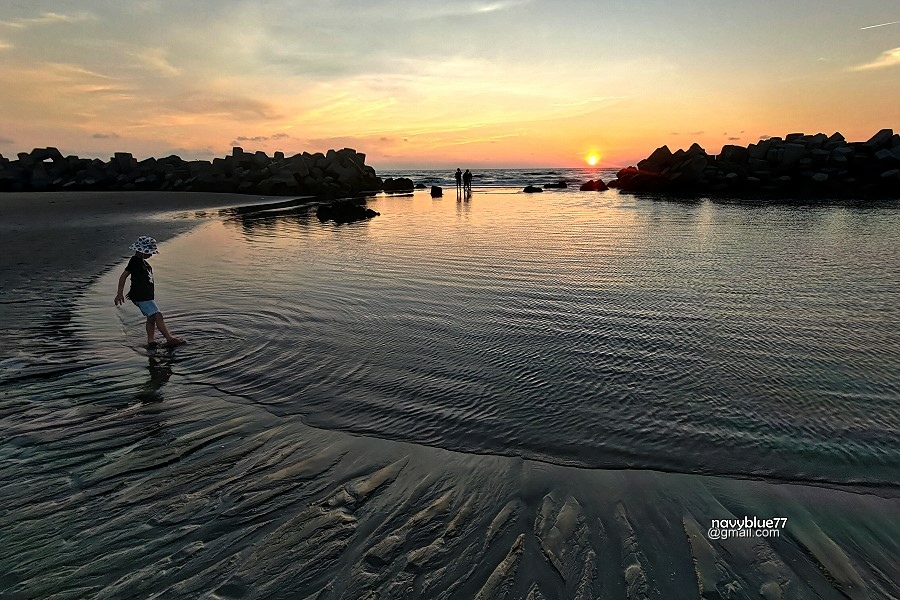 沙洲與消波塊之間由海浪沖出的迷你C形海灣,在夕陽下十分迷人。