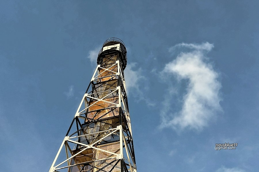 由頂頭額沙洲回望墱塔,可見燈塔頂有一間控制室。
