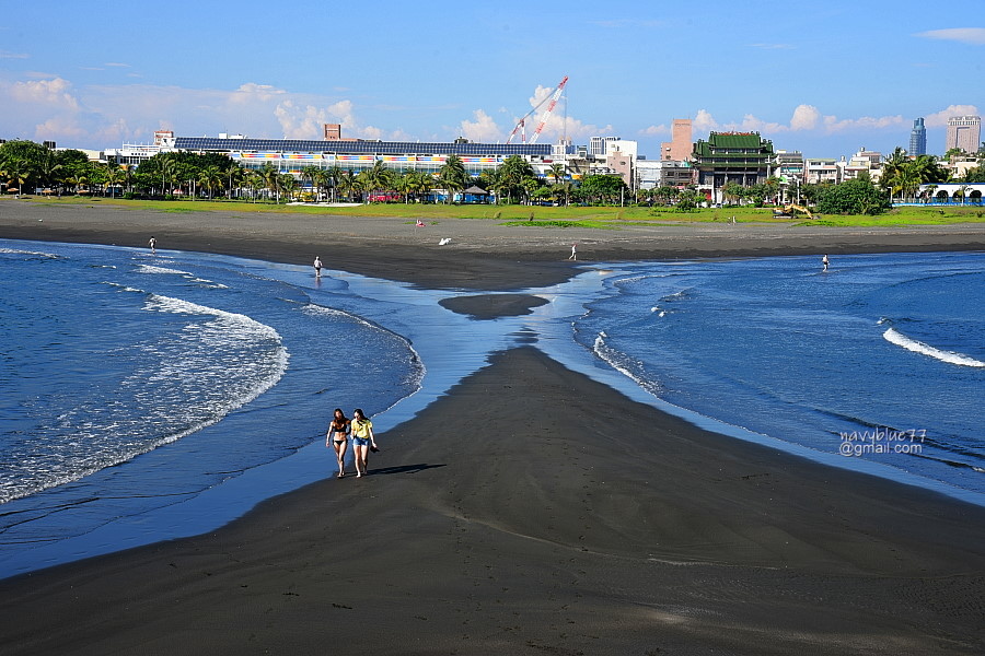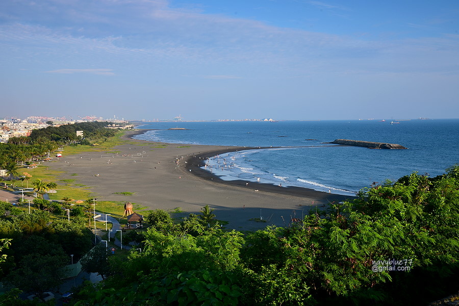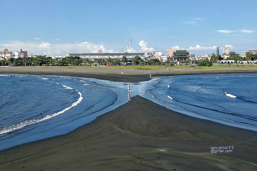 由砲台下瞰另一邊的旗津海灘,可以完整看到陸連島造成的雙C海灘。