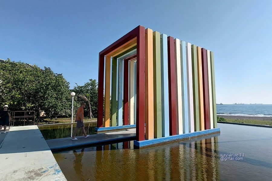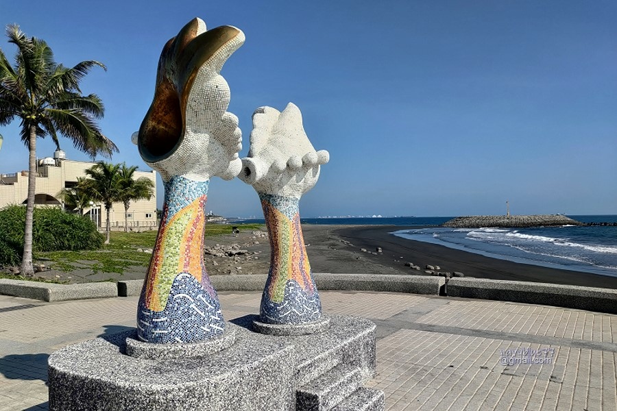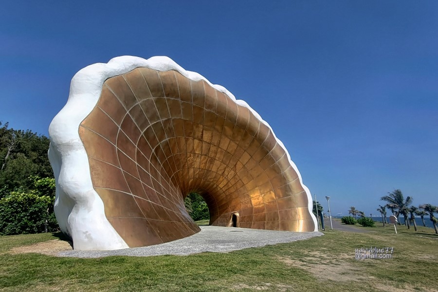 海珍珠是旗津人氣很高的公共藝術作品,可以在裡面聆聽海浪聲喔!