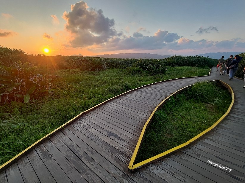 龍磐公園內新設的木棧步道,減少對環境的衝擊,也成為美麗的景觀。