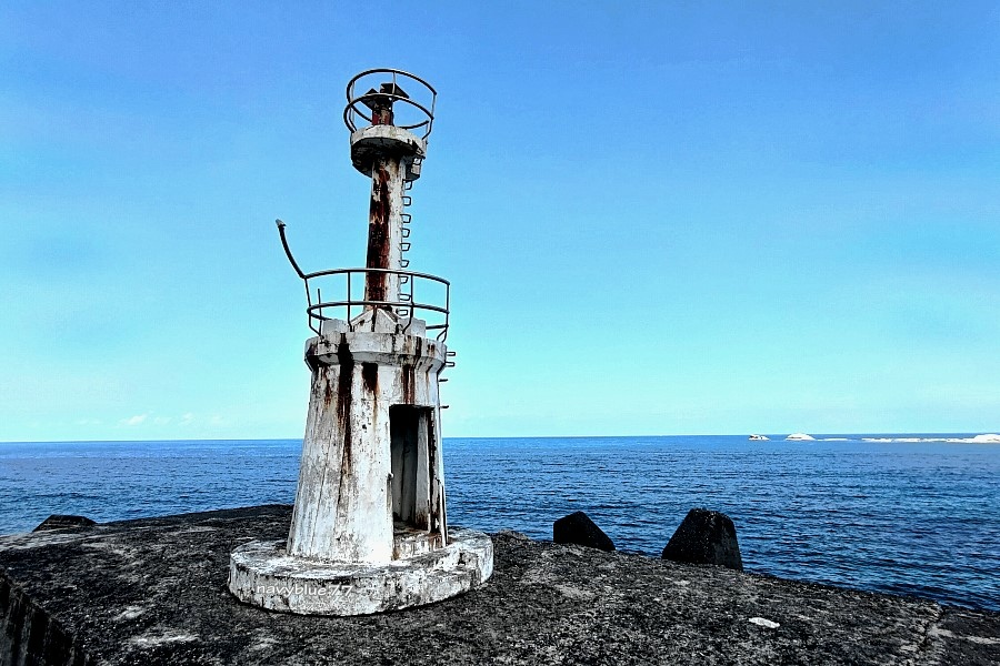 石梯燈杆的位置在外港海堤的末端最高處,原始作用應該是像成功新港燈杆一樣,是航海指引燈,現在破舊的樣子,讓布魯一度以為它整個廢棄不用了。