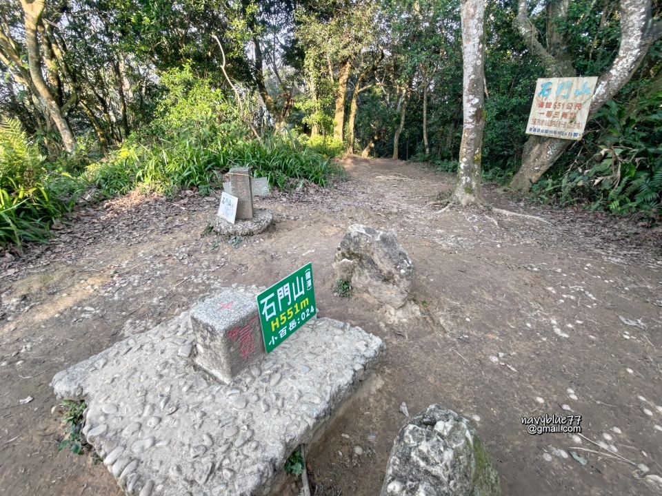 石門山頂有一等三角點、省政府保安林樁、三角補點等三顆基石,可惜展望不佳。