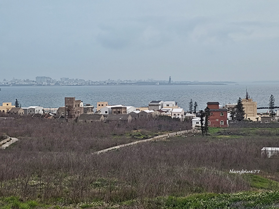 由觀景台眺望大倉漁村,海對面就是馬公重光漁村及大觀音像。