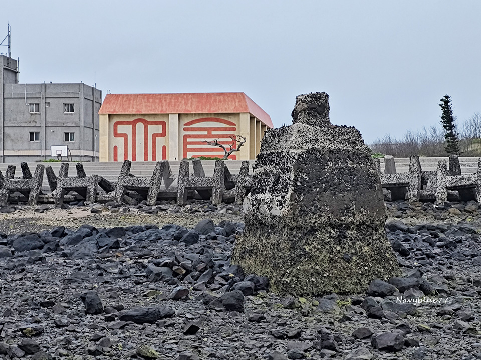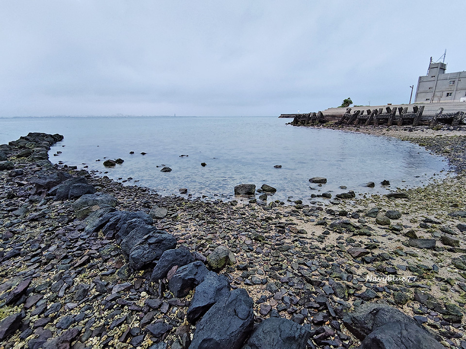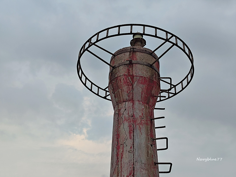 大倉島極東的大礫石灘上,原本有一支燈杆已鞠躬盡瘁,只留下下半部的燈座。